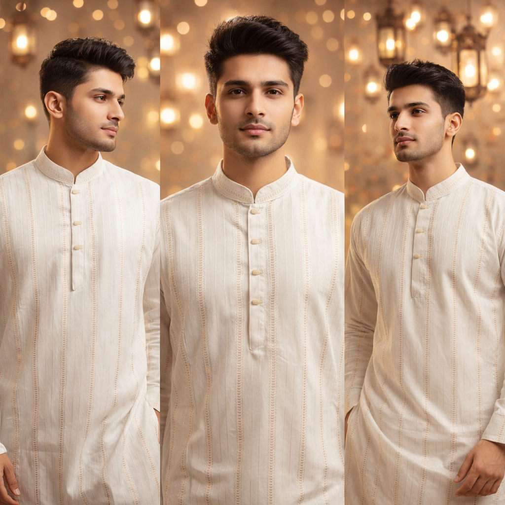 এই প্রিমিয়াম হোয়াইট পাঞ্জাবিটি তৈরি করা হয়েছে উচ্চমানের কাতান ফ্যাব্রিক দিয়ে,